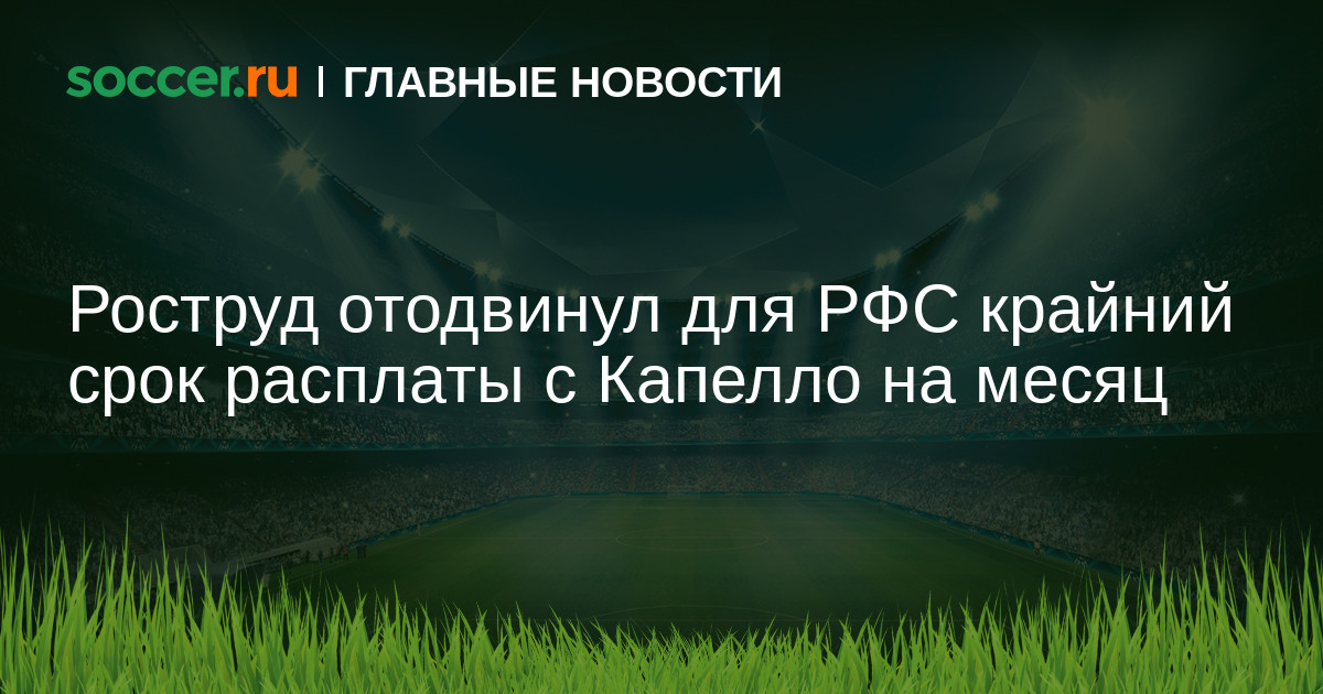 Федеральная служба по труду и занятости удовлетворила ходатайство президента РФС Николая Толстых о продлении на месяц (до 19 января) крайнего срока для выплаты задолженности по зарплате наставнику сборной России Фабио Капелло, ее генеральному менеджеру Оресте Чинквини и другим итальянским специалистам, работавшим с национальной командой.