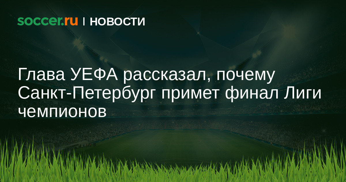 Президент УЕФА Александер Чеферин прокомментировал выбор Санкт-Петербурга в качестве места проведения финального матча Лиги чемпионов в 2021 году.