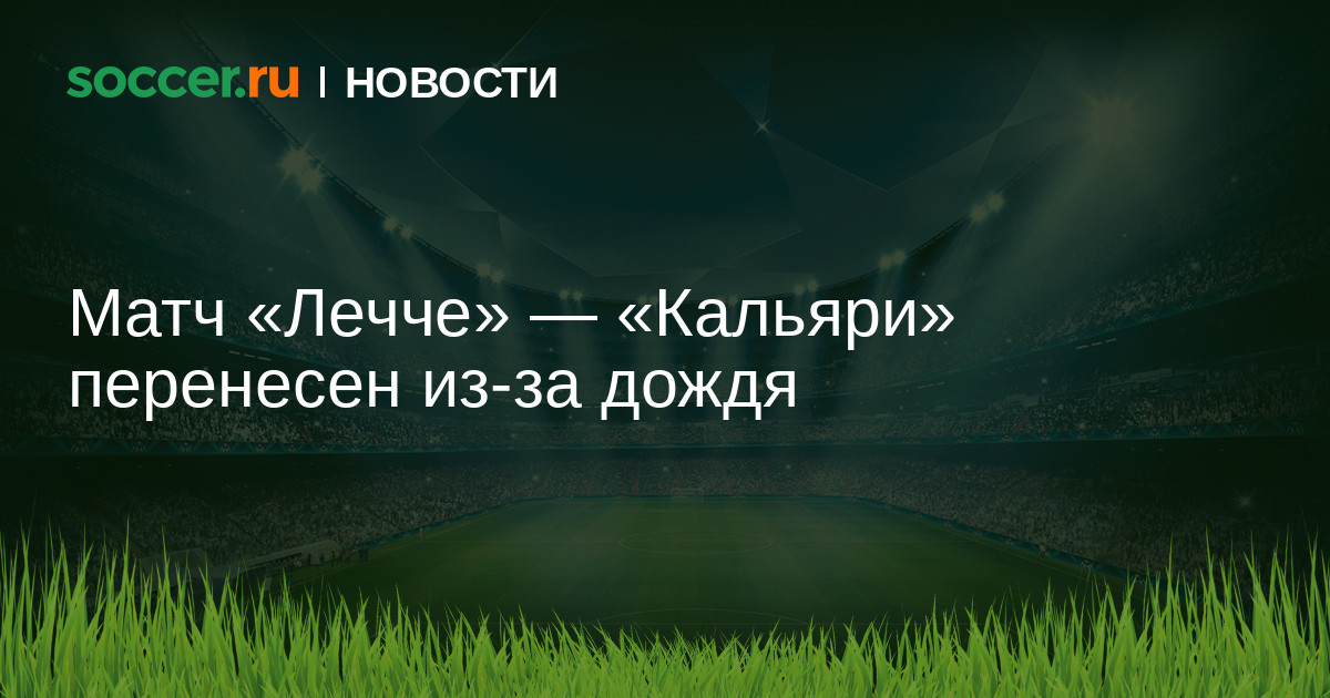 Поединок 13-го тура чемпионата Италии «Лечче» — «Кальяри» перенесли из-за проливного дождя, превратившего поле в непригодное для проведения футбольного матча. Вероятнее всего, встреча состоится в понедельник, 25 ноября.