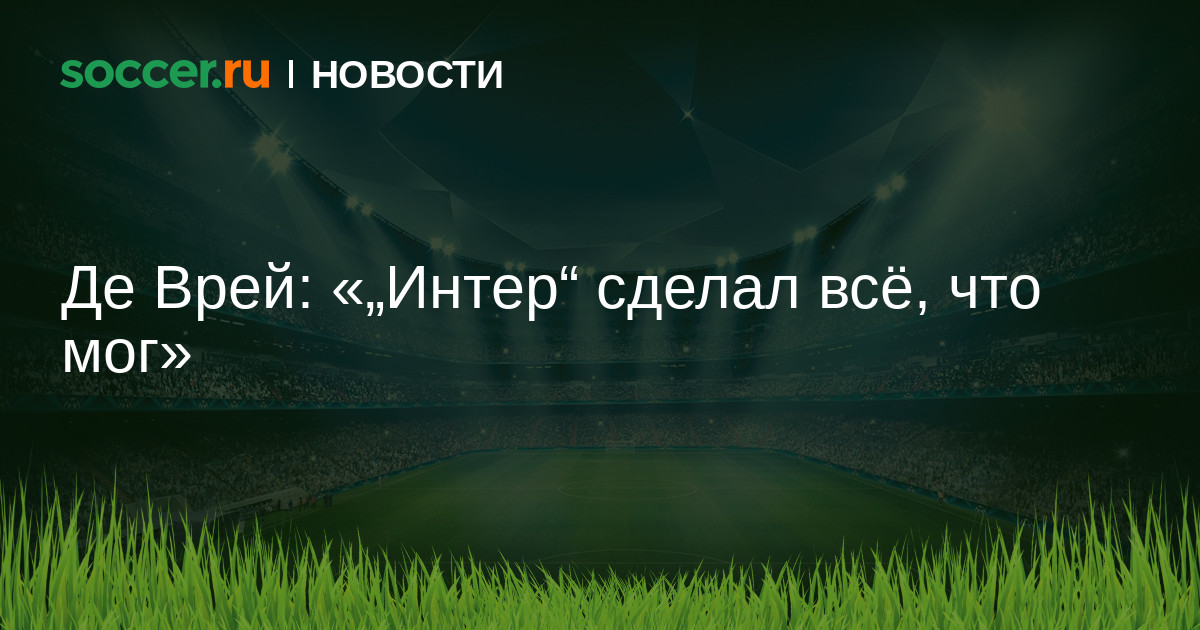 Защитник «Интера» Стефан де Врей прокомментировал поражение от «Барселоны» (1:2) в матче 6-го тура группового этапа Лиги чемпионов и вылет своей команды из турнира.