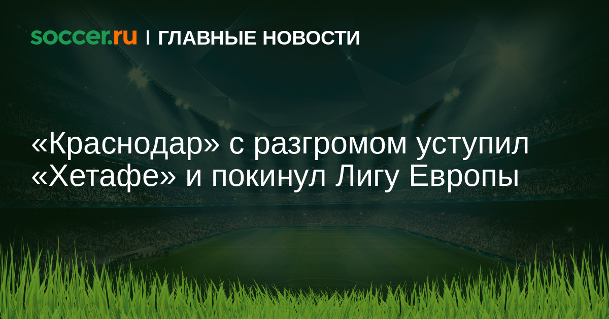 В матче 6-го тура группового этапа Лиги Европы «Краснодар» в гостях уступил «Хетафе». На 76-й минуте Леандро Кабрера открыл счет в матче, затем на 79-й Хорхе Малина удвоил преимущество, а Роберт Кенеди на 86-й установил окончательный счет. «Быки» завершают выступление в турнире на третьем месте (9 очков), «Хетафе» (12 очков) проходит в плей-офф со второго места.