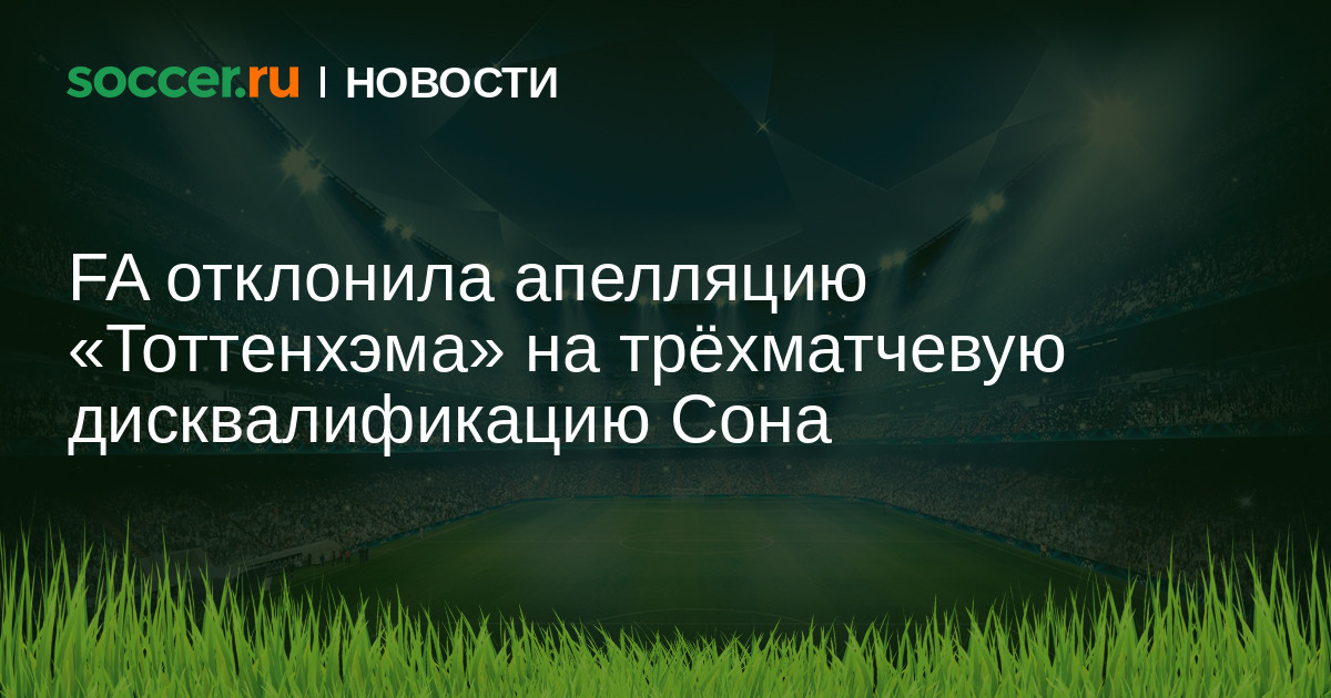 Футбольная ассоциация Англии (FA) отклонила апелляцию «Тоттенхэма» на трехматчевую дисквалификацию нападающего Сон Хын Мина.