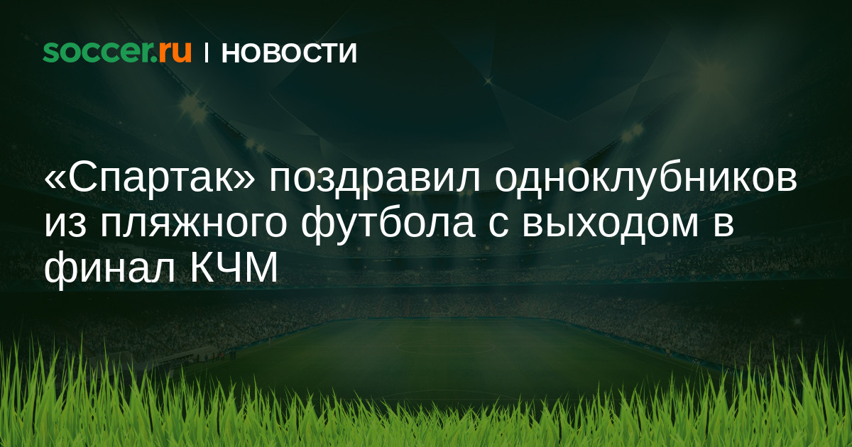 «Спартак» в твиттере поздравил одноклубников из пляжного футбола с выходом в финал клубного чемпионата мира. В полуфинале команда встречалась с соотечественниками из «Локомотива» (3:1).