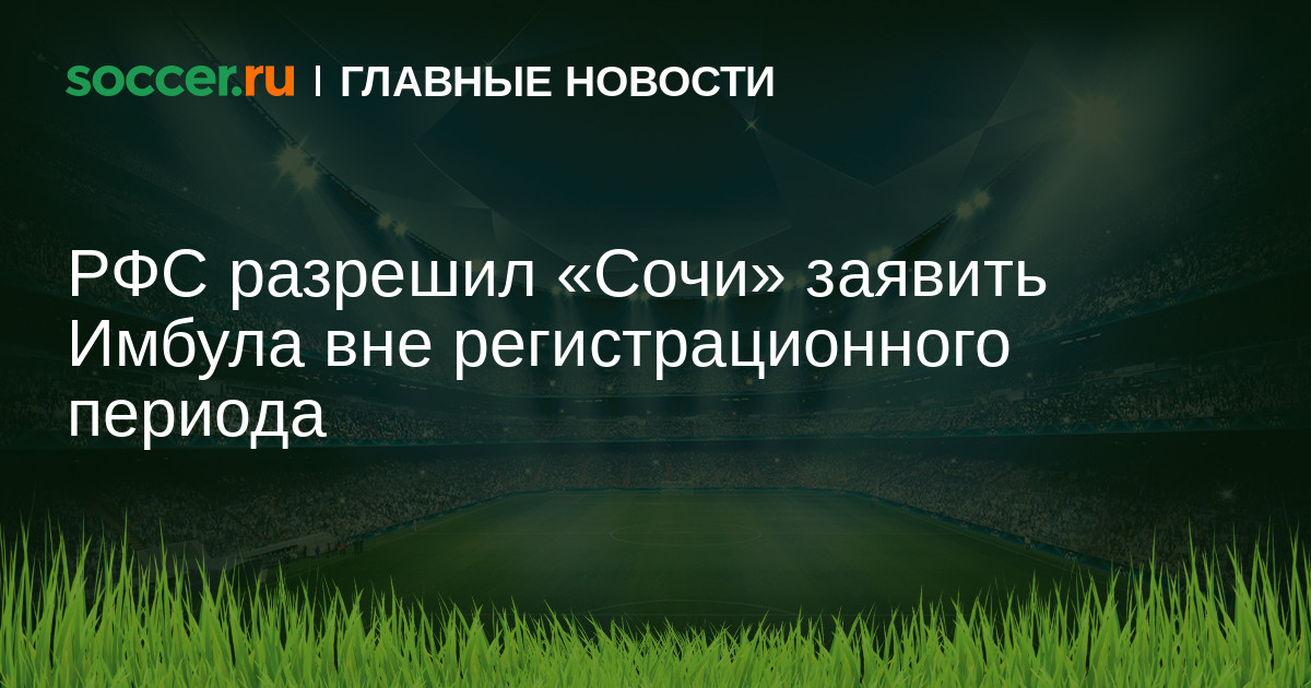 Комитет РФС по статусу игроков разрешил «Сочи» внести в заявку команды полузащитника Жанелли Имбула вне регистрационного периода. Таким образом, удовлетворена соответствующая просьба сочинского клуба.
