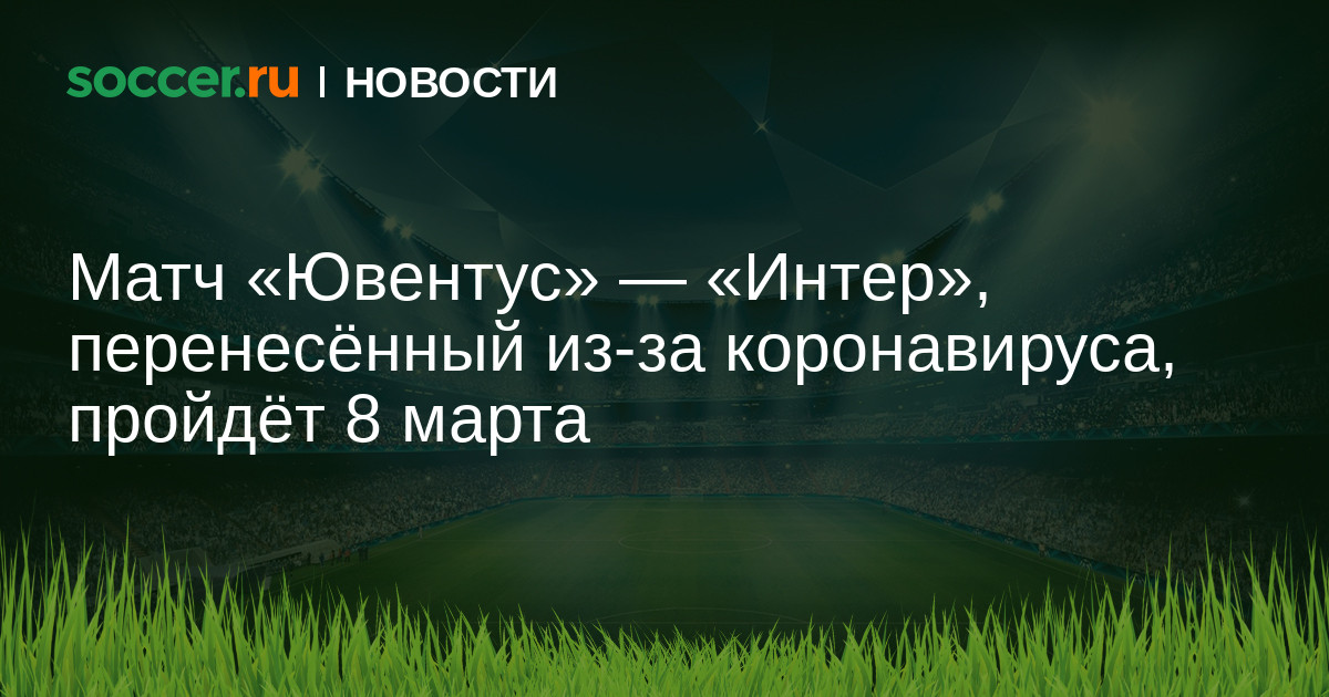По информации итальянских СМИ, матч 26-го тура Серии A между «Ювентусом» и «Интером», который были вынуждены перенести из-за вспышки коронавируса на севере страны, состоится 8 марта.