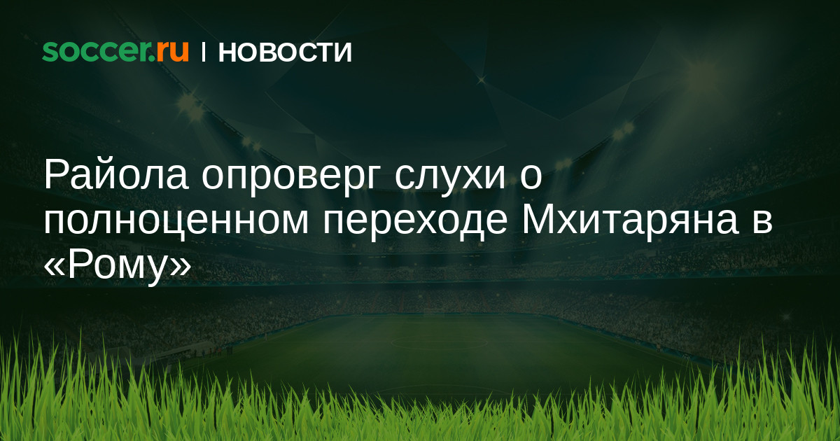 Футбольный агент Мино Райола опроверг слухи, что полузащитник Генрих Мхитарян близок к полноценному переходу в «Рому». В настоящее время футболист выступает за итальянцев на правах аренды, основные права на игрока принадлежат «Арсеналу».