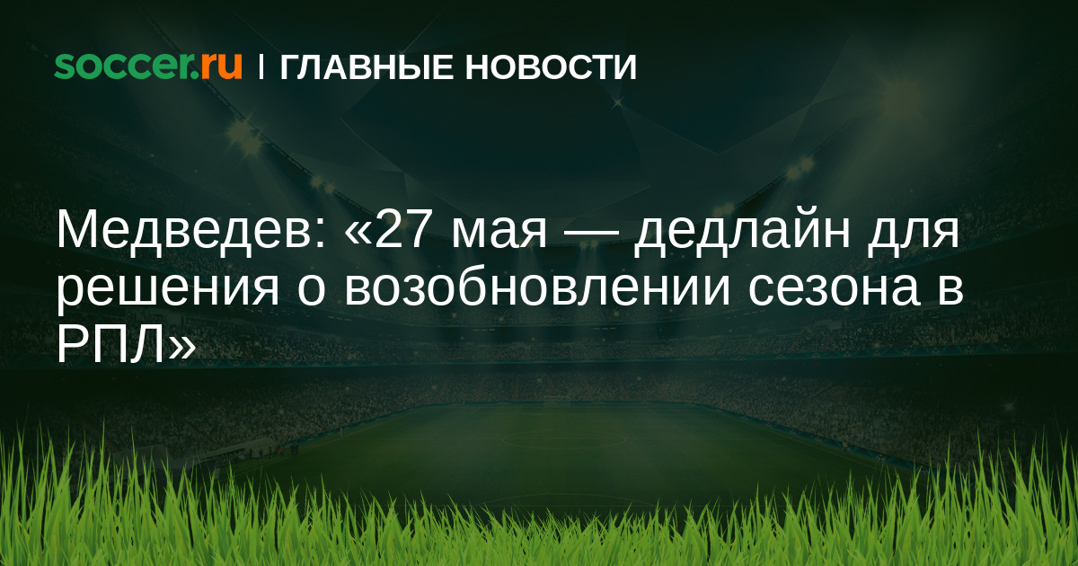Генеральный директор «Зенита» Александр Медведев заявил, что решение о возобновлении или досрочном завершении сезона в РПЛ должно быть принято до 27 мая.