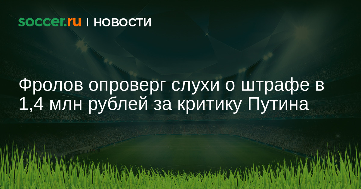 Голкипер «Крыльев Советов» Евгений Фролов опроверг информацию о том, что клуб оштрафовал его на 1,4 млн рублей за критику правительства РФ. Накануне об этом написал в соцсетях блогер Евгений Савин.
