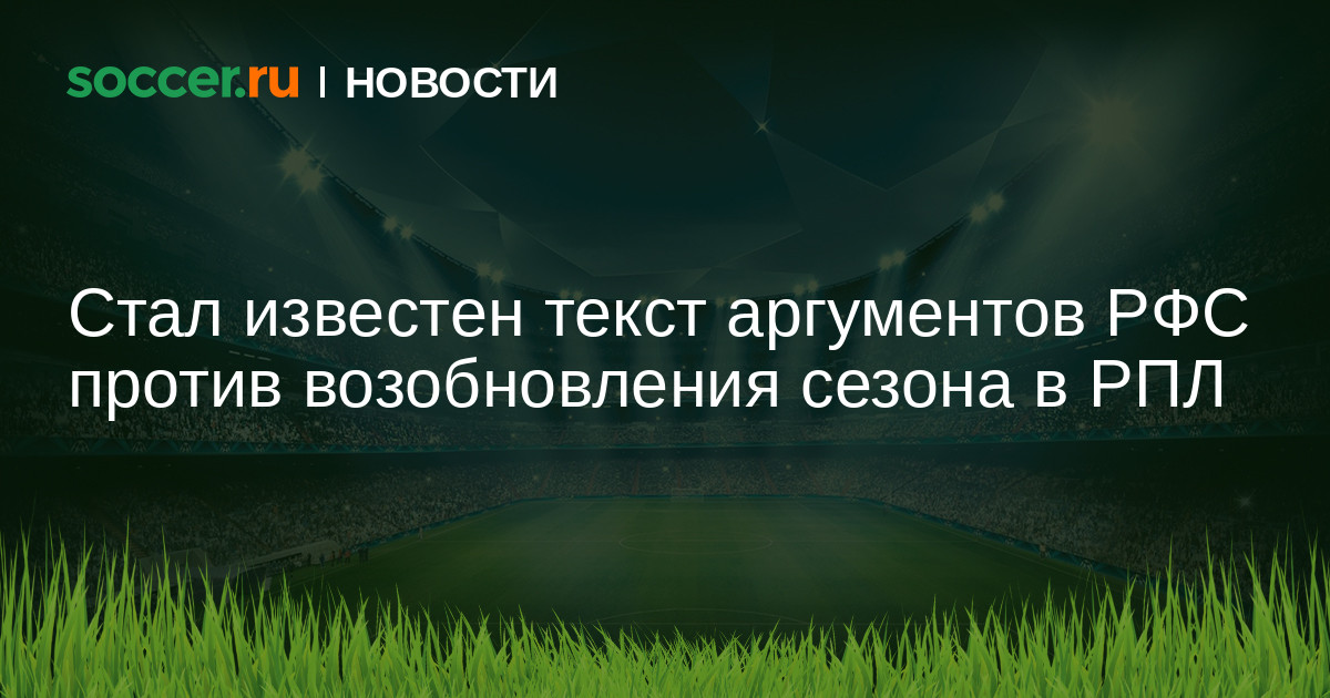 Источник сообщает, что на сегодняшнем заседании исполкома РФС будет принято решение о возобновлении сезон в РПЛ. Однако рассматриваются разные варианты событий. Появился текст справки, в которой представлена аргументация за отказ от возобновления чемпионата: