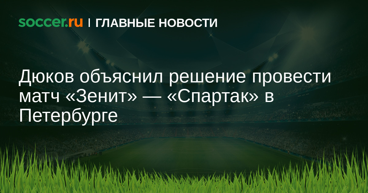 Глава РФС Александр Дюков прокомментировал решение организации провести матч полуфинала Кубка России «Зенит» — «Спартак» в Санкт-Петербурге.