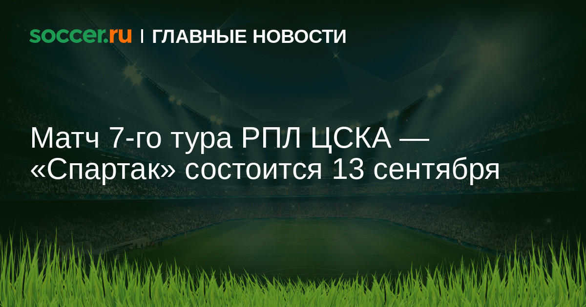 Московское дерби ЦСКА — «Спартак» в рамках 7-го тура РПЛ состоится 13 сентября.