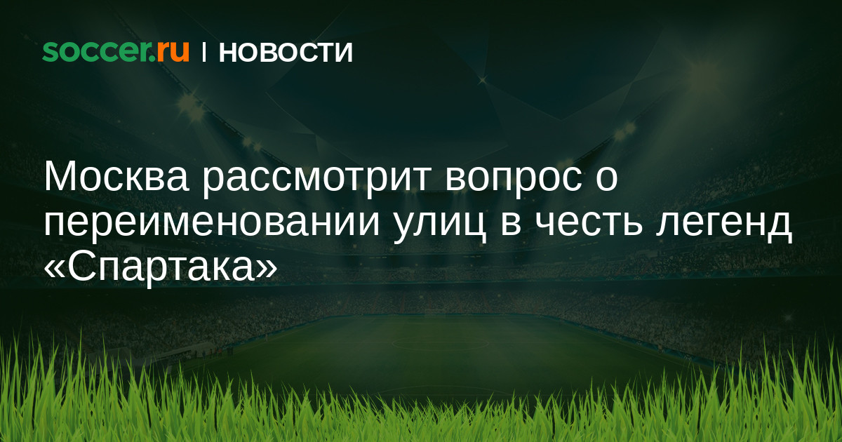 Пресс-служба «Спартака» сообщает, что городская межведомственная комиссия по наименованию территориальных единиц, улиц, станций метрополитена, организаций и других объектов города Москвы рассмотрит предложение председателя совета директоров московского «Спартака» Леонида Федуна о переименовании улиц в окрестностях домашнего стадиона команды «Открытие-Арена» в честь легенд футбольного клуба.