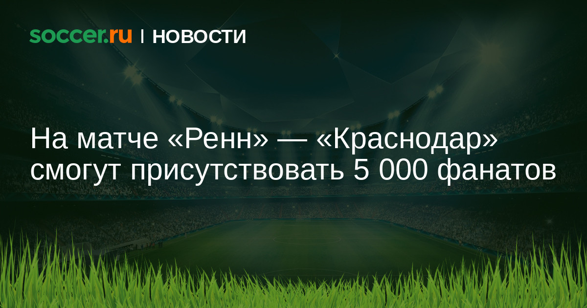 Матч 1-го тура группового этапа Лиги чемпионов между «Ренном» и «Краснодаром» смогут посетить 5 000 болельщиков. Об этом сообщает официальный сайт французского клуба.