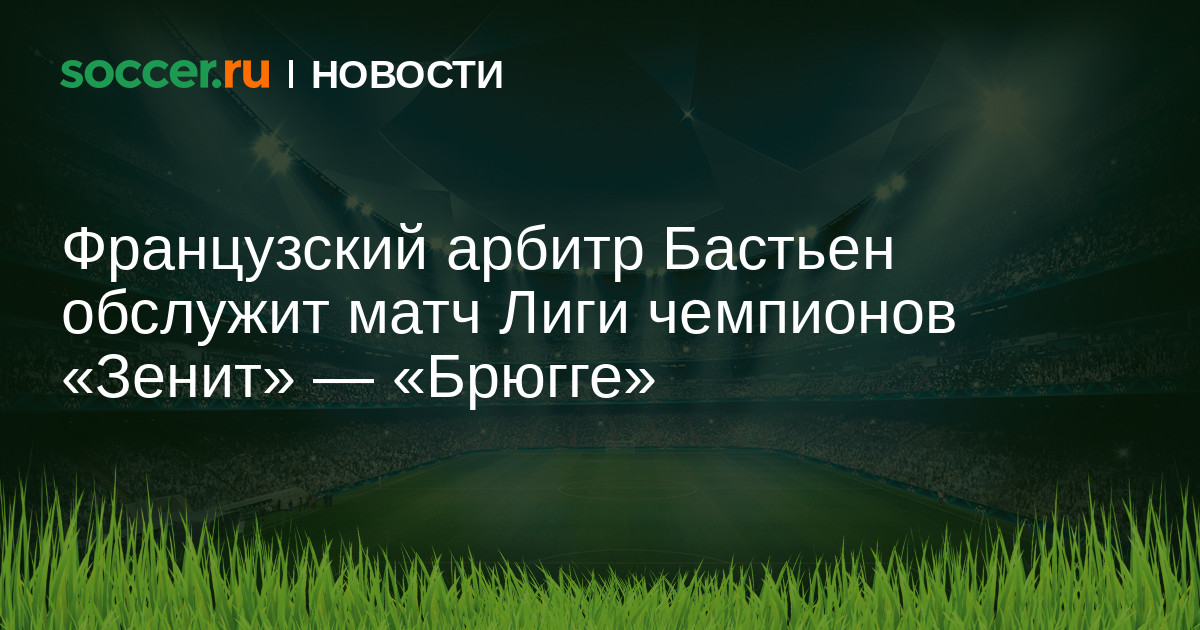 Бригада арбитров во главе с французом Бенуа Бастьеном обслужит матч первого тура группового этапа Лиги чемпионов между «Зенитом» и «Брюгге».