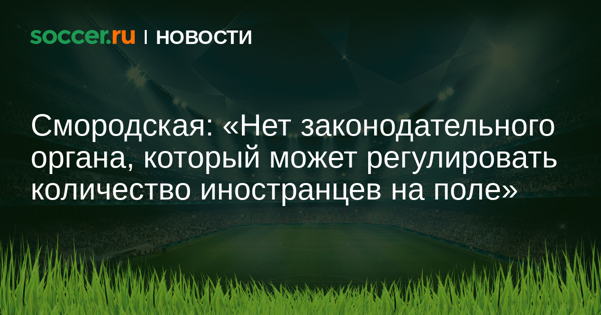 Нет законодательного органа, который может регулировать количество иностранцев на поле. Министерство спорта не имеет права на это. Закон на федеральном уровне касается только миграционных ограничений, но он не может касаться количества иностранцев на поле. Если подобное случится, то это станет очень печальным событием. Значит, есть зависимость, которой быть не должно. Дело в том, что мы проводим все соревнования под эгидой ФИФА и УЕФА. Если мы живем по этому уставу, то у нас не может быть связи между государством и общественными организациями. Надеюсь, что все это отлично понимают. Такое положение дел не подготовит для нас новых звезд, потому что все, кто есть, уже блистают у нас в чемпионате», — сказала Смородская.
