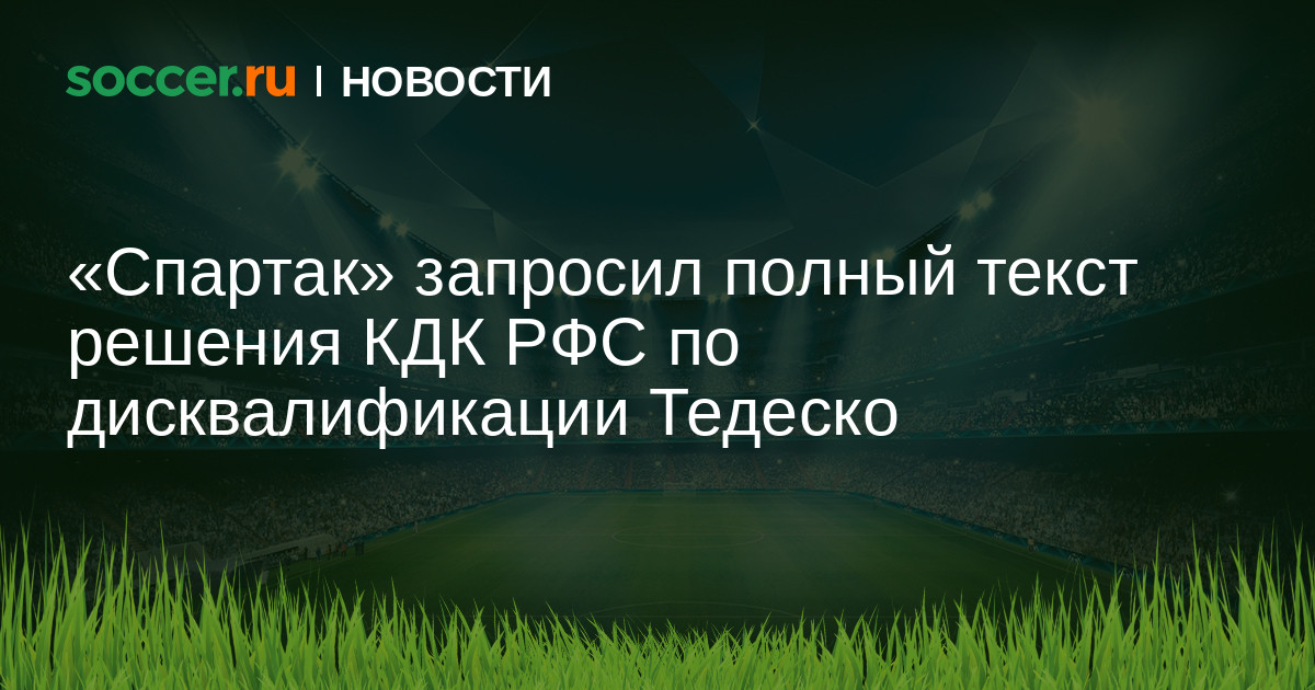 В службе коммуникаций «Спартака» сообщили, что московский клуб запросил полный текст решения КДК РФС по дисквалификации главного тренера Доменико Тедеско на три матча по итогам встречи 18-го тура РПЛ против «Сочи» (0:1).