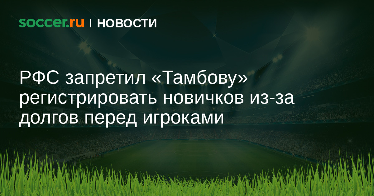 «Тамбов» получил запрет на регистрацию новых игроков в качестве обеспечительной меры. Запрет можно снять по заявлению клуба в случае исполнения обязательств перед названными футболистами.