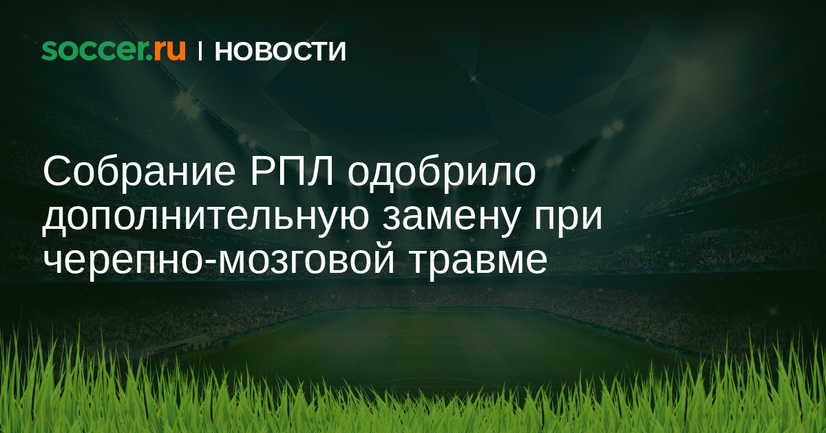 Общее собрание РПЛ одобрило введение дополнительной замены при подозрении на черепно-мозговую травму. Об этом сообщает официальный телеграм-канал РПЛ. Поправки должны быть внесены в регламент РПЛ сезона 2020/21 после утверждения Исполкомом РФС.