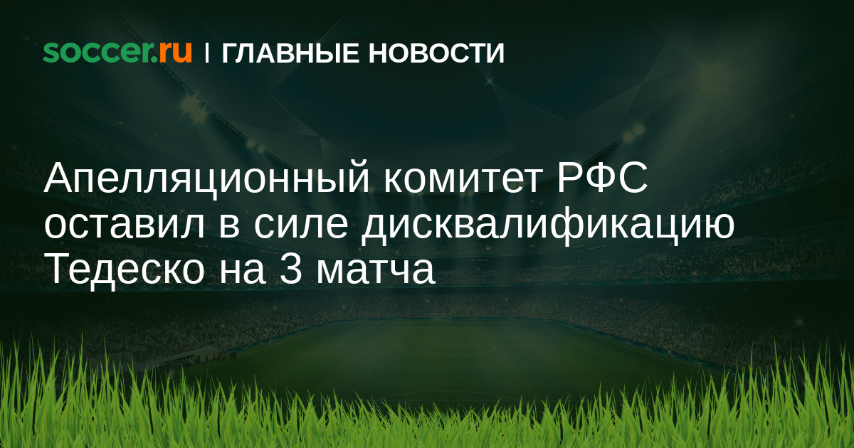 Таким образом, Тедеско пропустит матчи РПЛ против «Рубина», «Краснодара» и «Динамо».