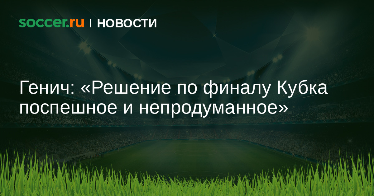 «Мне кажется, что решение по финалу Кубка поспешное и непродуманное. Сыграли бы полуфиналы и тогда бы определились. Куда торопиться-то?! — написал Генич в твиттере. — К тому же 21 мая — это ЧЕТВЕРГ! 23 или 24 играть нельзя?»