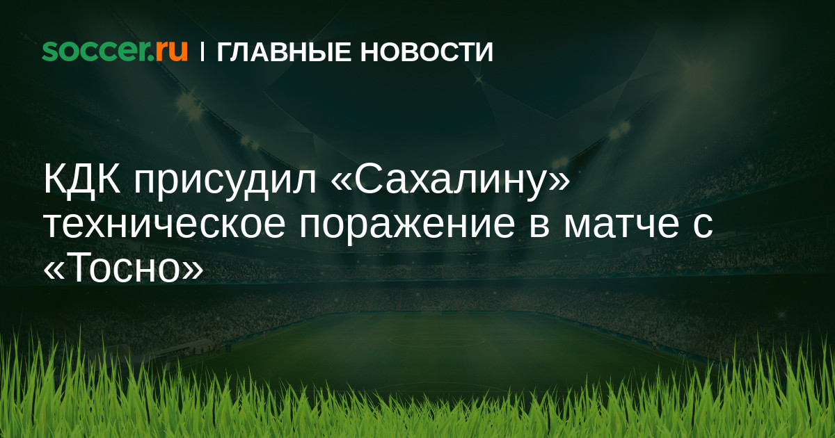 КДК РФС принял решение по матчу первенства ФНЛ «Сахалин» – «Тосно». В соответствии со статьей 99 дисциплинарного регламента хозяевам присуждено поражение со счетом 0:3. «Сахалин» также оштрафован на 100 тысяч рублей.