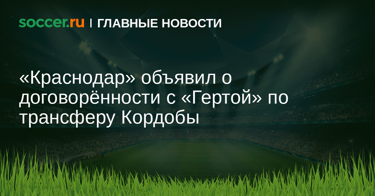 «Краснодар» в клубном твиттере сообщает, что достиг предварительной договорённости с «Гертой» о трансфере нападающего Джона Кордобы.