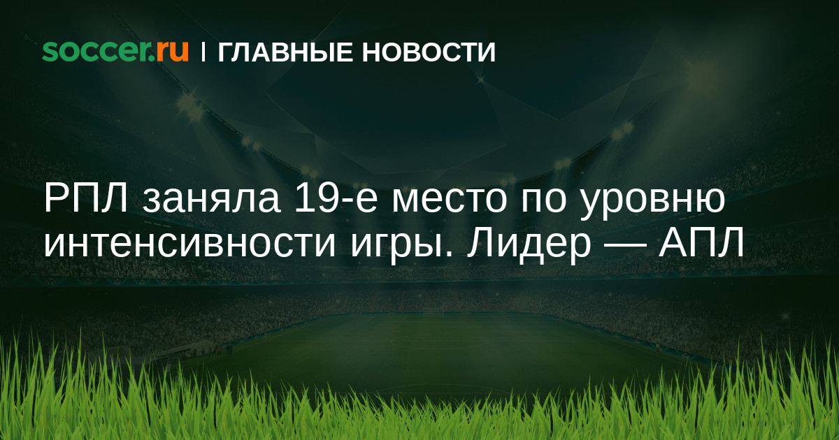 Российская Премьер-лига заняла в рейтинге 19-е место. Интенсивность игры составила 7.15% при средней дистанции футболистов в 10 033 метра.