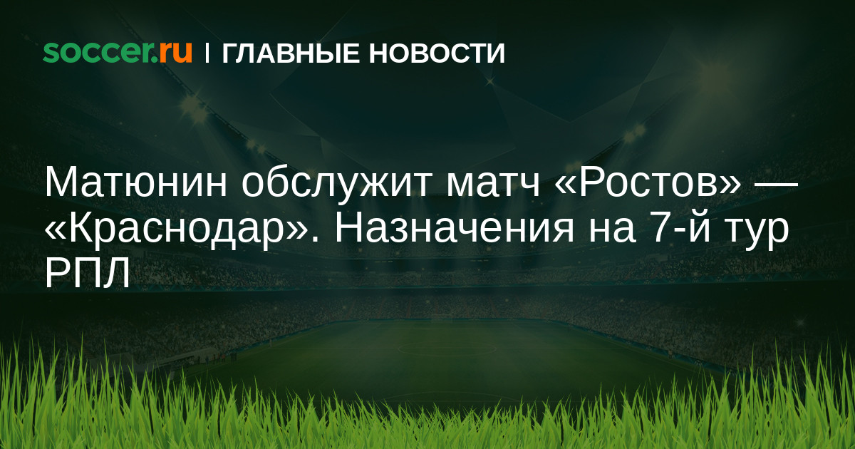 Центральный матч тура между «Ростовом» и «Краснодаром» обслужит Алексей Матюнин. С другими назначениями вы можете ознакомиться ниже.