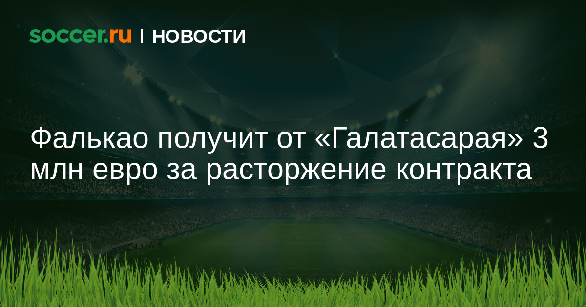Колумбийский нападающий Радамель Фалькао, который недавно покинул турецкий «Галатасарай», получит 3 млн евро за досрочное расторжение контракта. Такой пункт был указан в трудовом соглашении игрока. Колумбиец недавно подписал контракт с испанским клубом из Примеры. Соглашение рассчитано на два сезона.