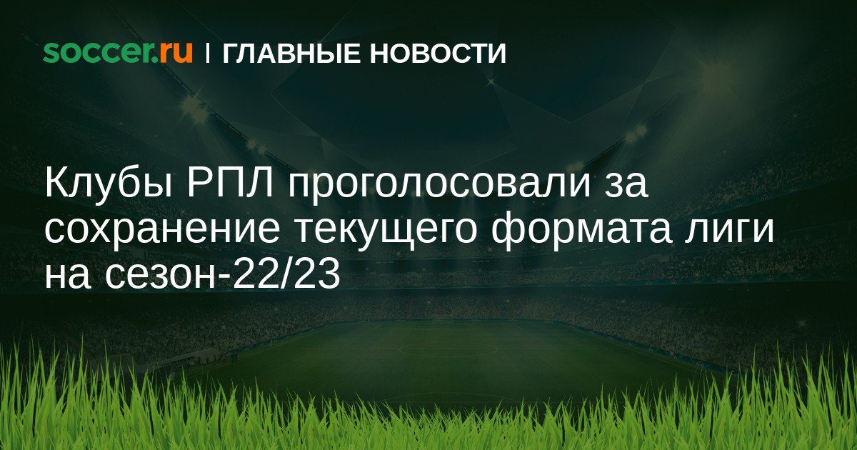 Все участники общего собрания проголосовали за сохранение текущего формата РПЛ на сезон 2022/2023 – чемпионат будет проводиться с участием 16 команд в 30 туров. Решение связано с неопределённостью вокруг сроков введения новых форматов клубных турниров УЕФА, а также возможными изменениями в международном календаре ФИФА.