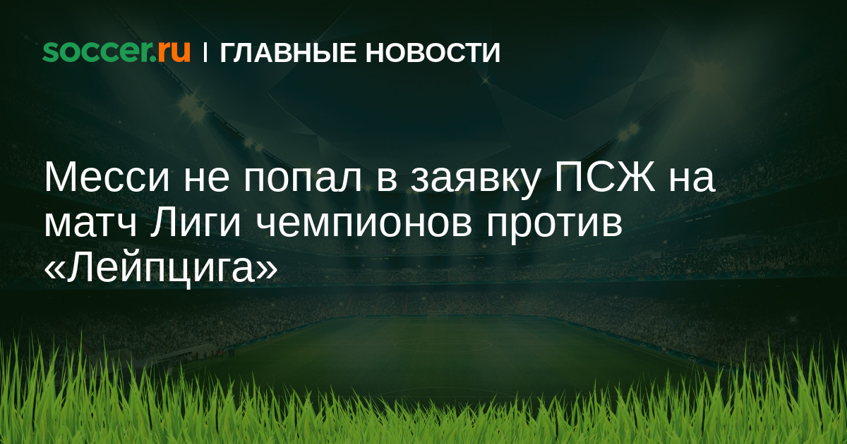 Нападающий Лионель Месси не попал в заявку ПСЖ на матч группового этапа Лиги чемпионов против «Лейпцига».