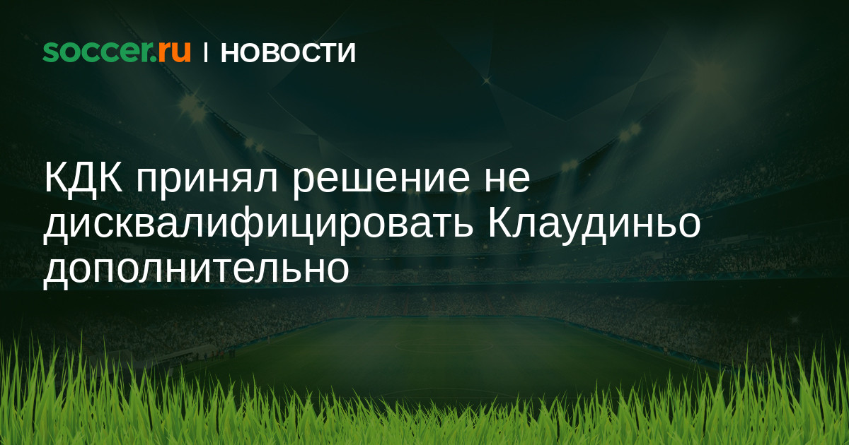 КДК РФС не стал применять дополнительную дисквалификацию к Клаудиньо. Он пропустит один матч.