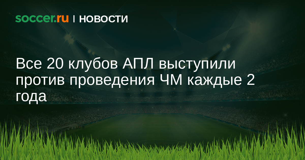 Пресс-служба Англиской Премьер-Лиги сообщает, что все 20 команд чемпионата Англии выступили против проведения чемпионата мира каждые 2 года.