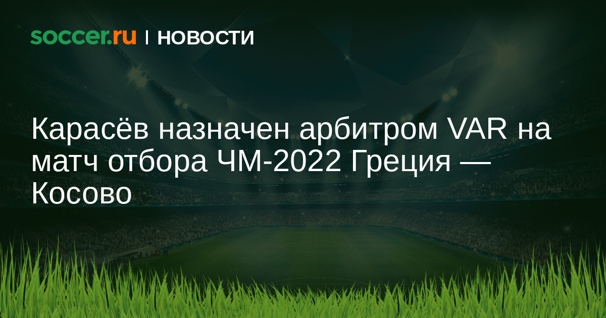 Российский арбитр Сергей Карасёв вошел в состав судейской бригады на матч отбора ЧМ-2022 группы В Греция — Косово.