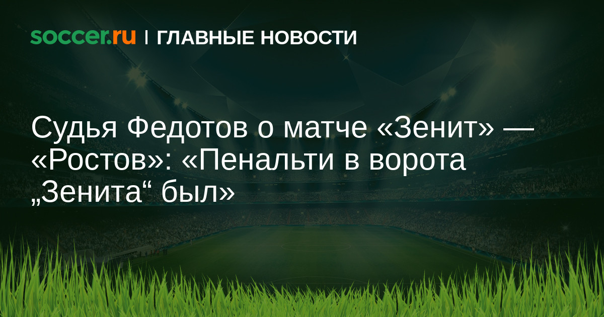 Российский арбитр Игорь Федотов дал свой комментарий по поводу эпизода с назначением пенальти в ворота «Зенита» в текущей игре 17-го тура чемпионата России «Зенит» — Ростов":