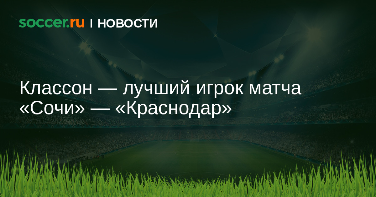 Полузащитник «Краснодара» Виктор Классон признан лучшим игроком матча 17-го тура Российской Премьер-Лиги против «Сочи» (2:1).