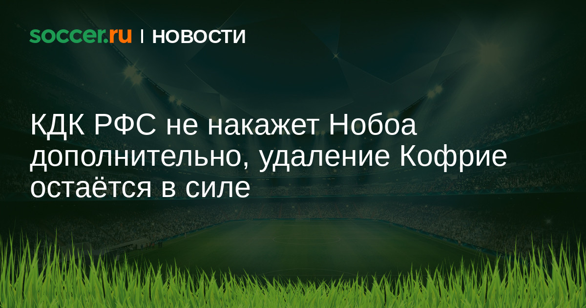Контрольно-дисциплинарный комитет Российского футбольного союза (КДК РФС) оставил в силе автоматическую дисквалификацию на одну игру полузащитника «Сочи» Кристиана Нобоа, а также красную карточку защитника московского «Спартака» Максимилиано Кофрие.