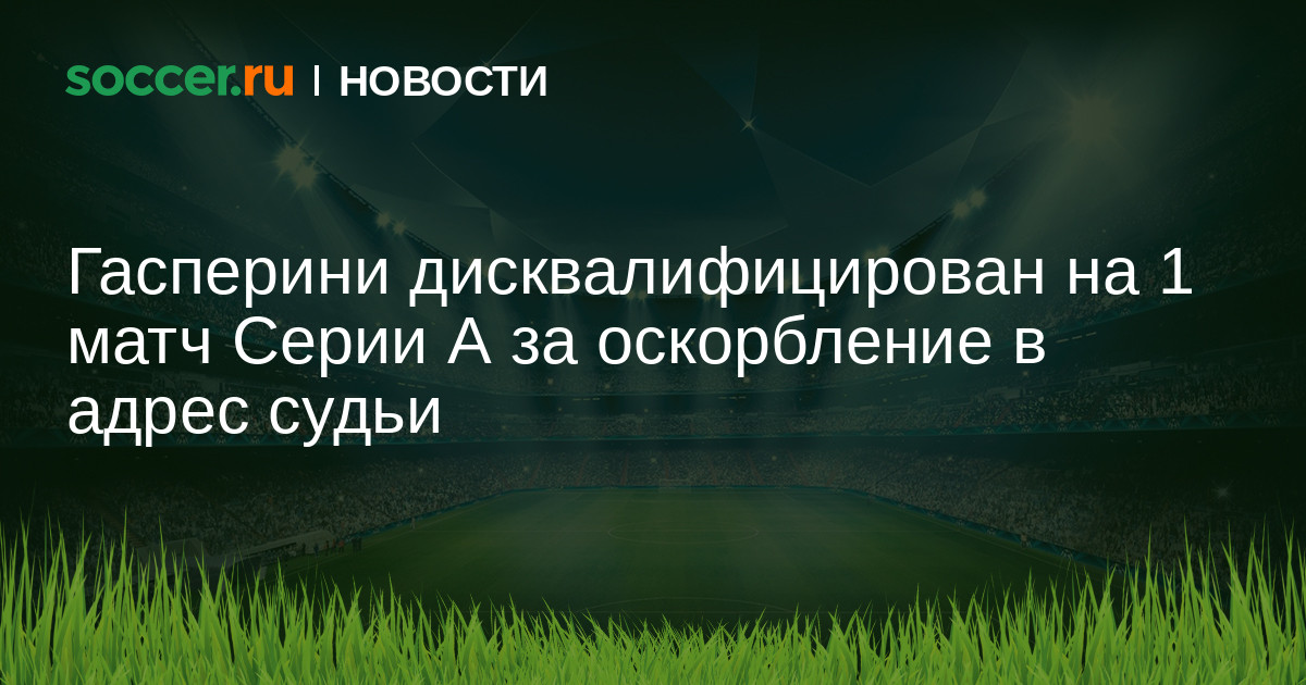 Главный тренер «Аталанты» Джан Пьеро Гасперини отстранен на один матч Серии А.