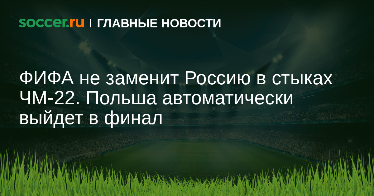 Przegląd Sportowy со ссылкой на источник в Польском футбольном союзе сообщает, что ФИФА не будет искать замену для сборной России. Польша в финале стыкового этапа сыграет с победителем пары Чехия — Швеция. Официально об этом объявят в ближайшее время.