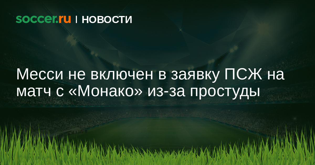 Форвард ПСЖ Лионель Месси не включен в заявку команды на матч 29-го тура чемпионата Франции с «Монако».
