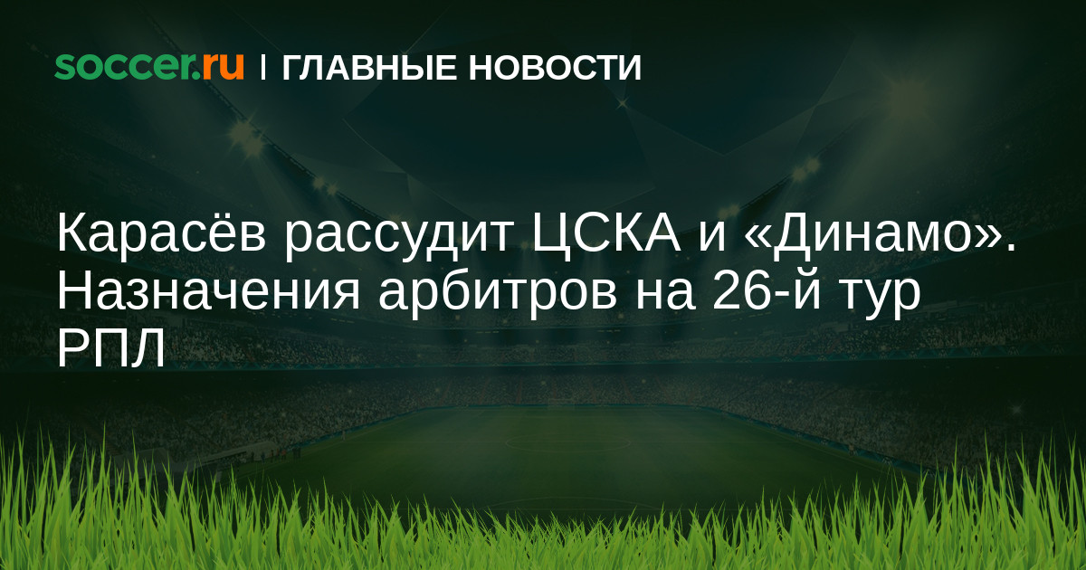 Назначены арбитры и инспекторы на матчи 26-го тура Российской Премьер-лиги.