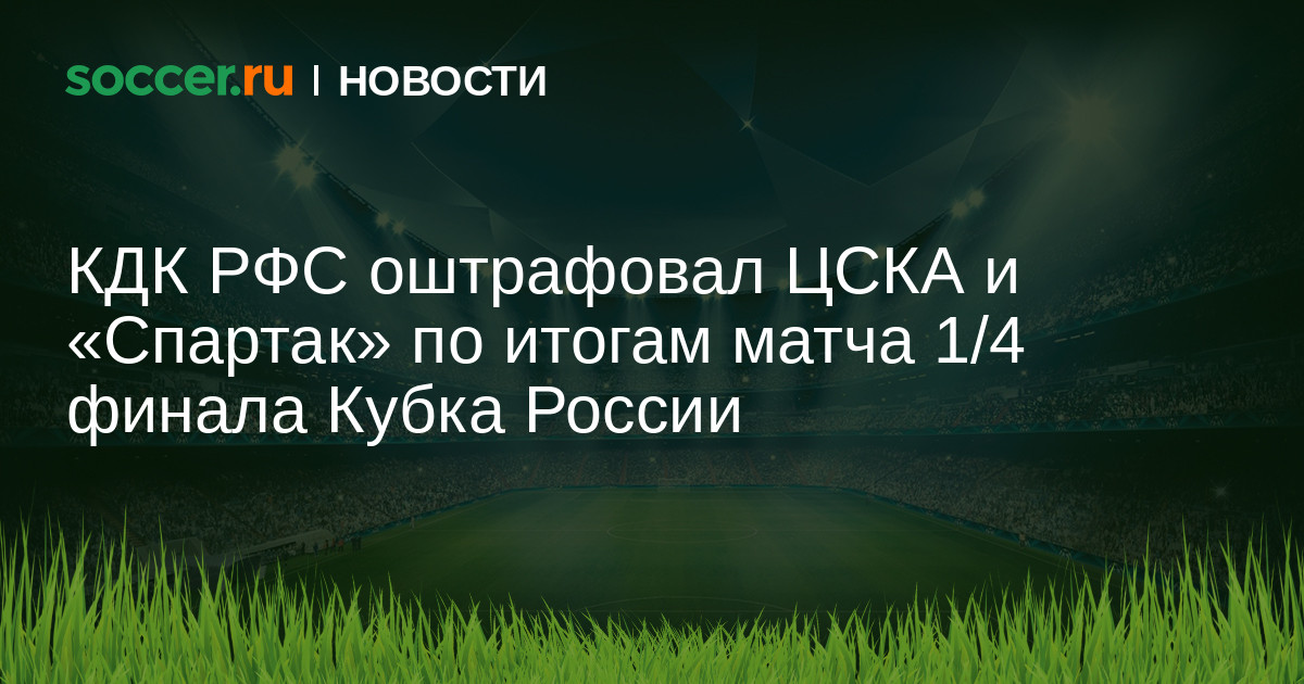 Председатель КДК РФС Артур Григорьянц рассказал, что ЦСКА и «Спартак» оштрафованы по итогам матча 1/4 финала Кубка России.
