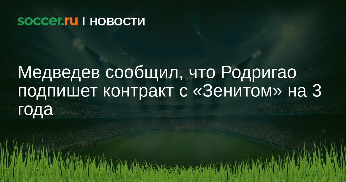 Генеральный директор «Зенита» Александр Медведев подтвердил, что защитник «Сочи» Родригао перейдёт в питерский клуб. Медведев сообщил срок контракта бразильца с «Зенитом».