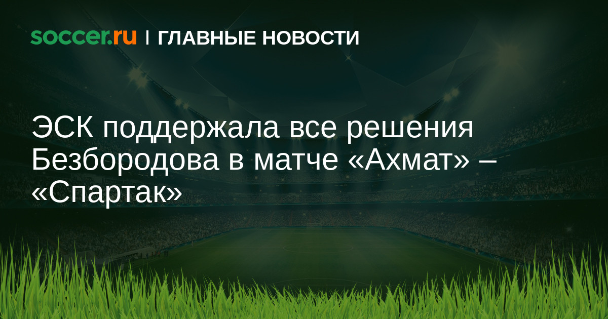 Во вторник, 19 июля, состоялось заседание экспертно-судейской комиссии при президенте РФС. Было рассмотрено обращение футбольных клуба «Спартак» относительно судейства Владислава Безбородова в матче с «Ахматом» (1:1).