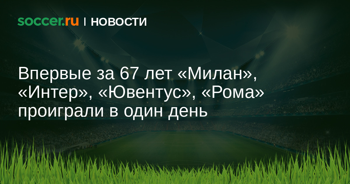 «Милан», «Интер», «Ювентус» и «Рома» проиграли в Серии А в один день впервые за 67 лет. Последний раз это случилось 13 февраля 1955 года.