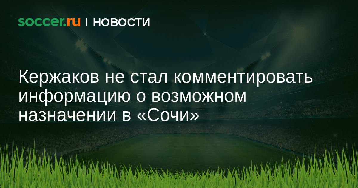 Российский футболист и тренер Александр Кержаков не стал комментировать информацию о том, что может возглавить «Сочи». Ранее о том, что Кержаков может стать главным тренером сочинского клуба сообщил комментатор Константин Генич.