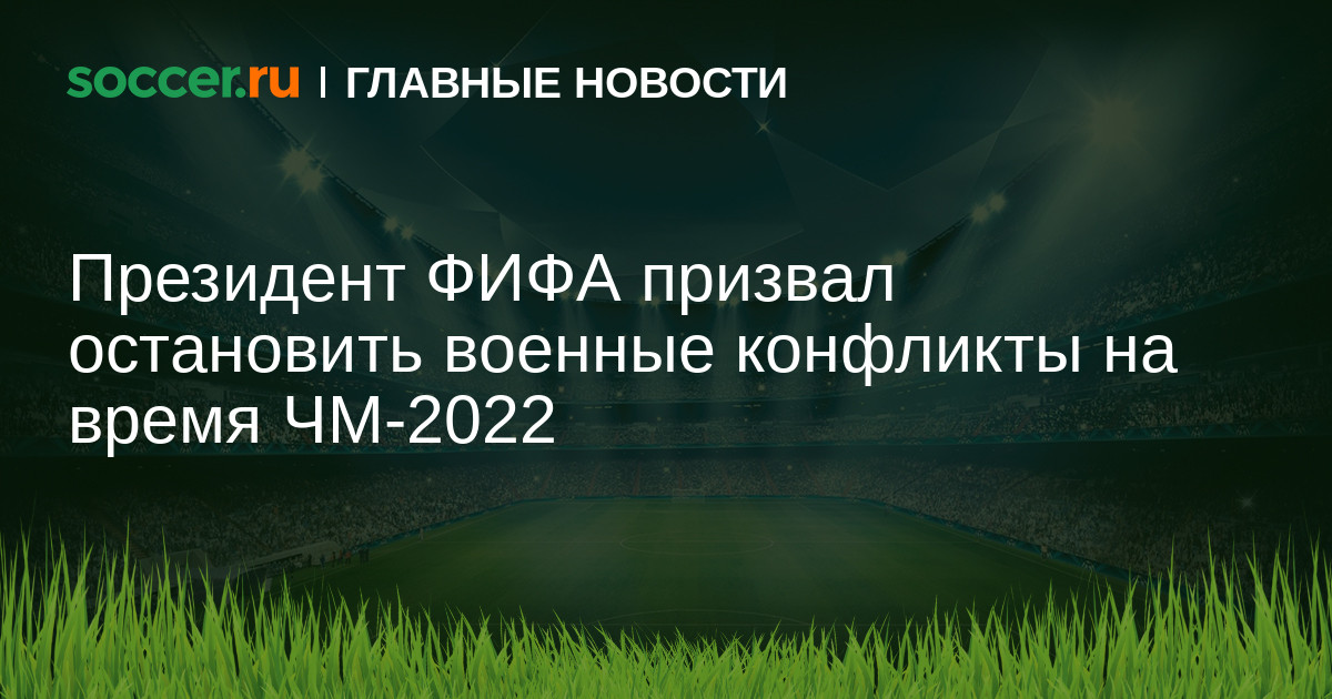 Президент ФИФА Джанни Инфантино обратился к лидерам стран на саммите G20, призвав остановить все вооруженные конфликты на время чемпионата мира по футболу. Мундиаль-2022 пройдет с 20 ноября по 18 декабря.