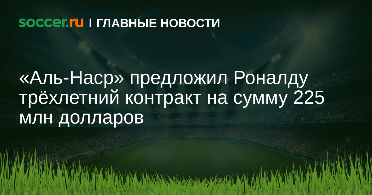Саудовский «Аль-Наср» предложил нападающему Криштиану Роналду трёхлетний контракт на сумму 225 млн долларов и возможность играть в команде до 40 лет.