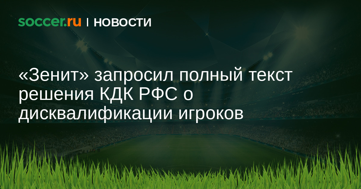 Петербургский «Зенит» 2 декабря официально запросил полный текст решения Контрольно‑дисциплинарного комитета (КДК) РФС о дисквалификации футболистов за драку в матче 6-го тура группового этапа Кубка России со «Спартаком».