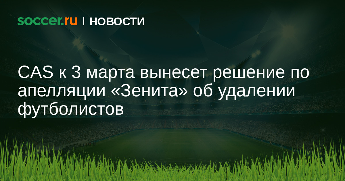 Касательно процедуры ФК «Зенит» против Российского футбольного союза (РФС), которая находится на рассмотрении Спортивного арбитражного суда (CAS) в Лозанне в Швейцарии, доводим до вашего сведения, что стороны договорились об ускоренной процедуре и что окончательное решение будет вынесено к 3 марта 2023 года. По согласованию сторон дело будет решать единоличный арбитр на основании письменных представлений сторон, без проведения слушания.